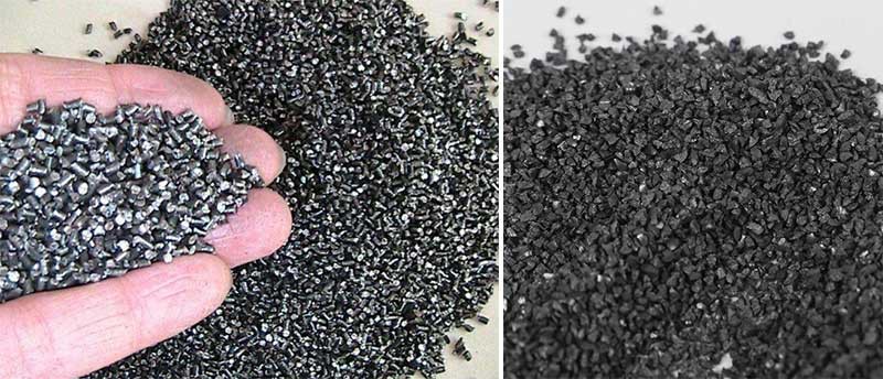 鋼砂是目前金屬磨料中主要用于大中型鑄件的清砂、鍛件和熱處理件的氧化皮清除、鋼板、型鋼和鋼構件的除銹和表面強化。鋼砂是由高碳鑄鋼丸通過粉碎成砂粒,然后回火成三種硬度(gh,GL,GP)以滿足不同的需要。經過處理的山東鋼砂被篩選成10個符合SAE標準的等級,以滿足噴砂的需要。不同尺寸和硬度的產品用于不同的場合,如圓柱雕刻、花崗巖切割等。山東鋼砂的原料是高碳鋼或合金鋼廢料。